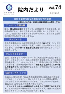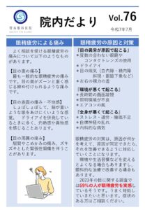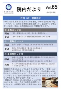 NEWS院内だより 菅谷眼科医院で掲示されている院内だよりをご覧いただけます。 院内だより一覧 院内だよりvol:78 記事を読む 院内だよりvol:77 記事を読む 院内だよりvol:76 記事を読む 院内だよりvol:75 記事を読む 院内だよりvol:74 記事を読む 院内だよりvol:73 記事を読む 院内だよりvol:72 記事を読む 院内だよりvol:71 記事を読む 院内だよりvol:70 記事を読む 院内だよりvol:69 記事を読む 院内だよりvol:68 記事を読む 院内だよりvol:67 記事を読む 院内だよりvol:66 記事を読む 院内だよりvol:64 記事を読む 院内だよりvol:63 記事を読む 院内だよりvol:62 記事を読む 院内だよりvol:61 記事を読む 院内だよりvol:60 記事を読む 院内だよりvol:59 記事を読む 院内だよりvol:58 記事を読む 院内だよりvol:57 記事を読む 院内だよりvol:56 記事を読む 院内だよりvol:55 記事を読む 院内だよりvol:54 記事を読む 院内だよりvol:53 記事を読む 院内だよりvol:65 記事を読む 院内だよりvol:52 記事を読む 院内だよりvol:51 記事を読む 院内だよりvol:50 記事を読む 院内だよりvol:49 記事を読む 1 2 3 次へ